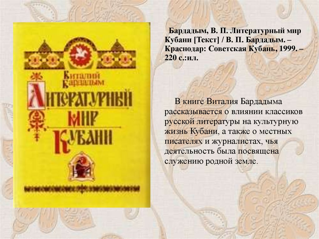 Бардадым, В. П. Литературный мирКубани [Текст] / В. П. Бардадым. –