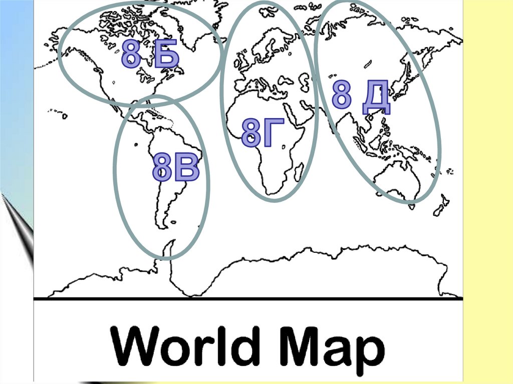 На слайде №21 карта мира разделена между классами на 4