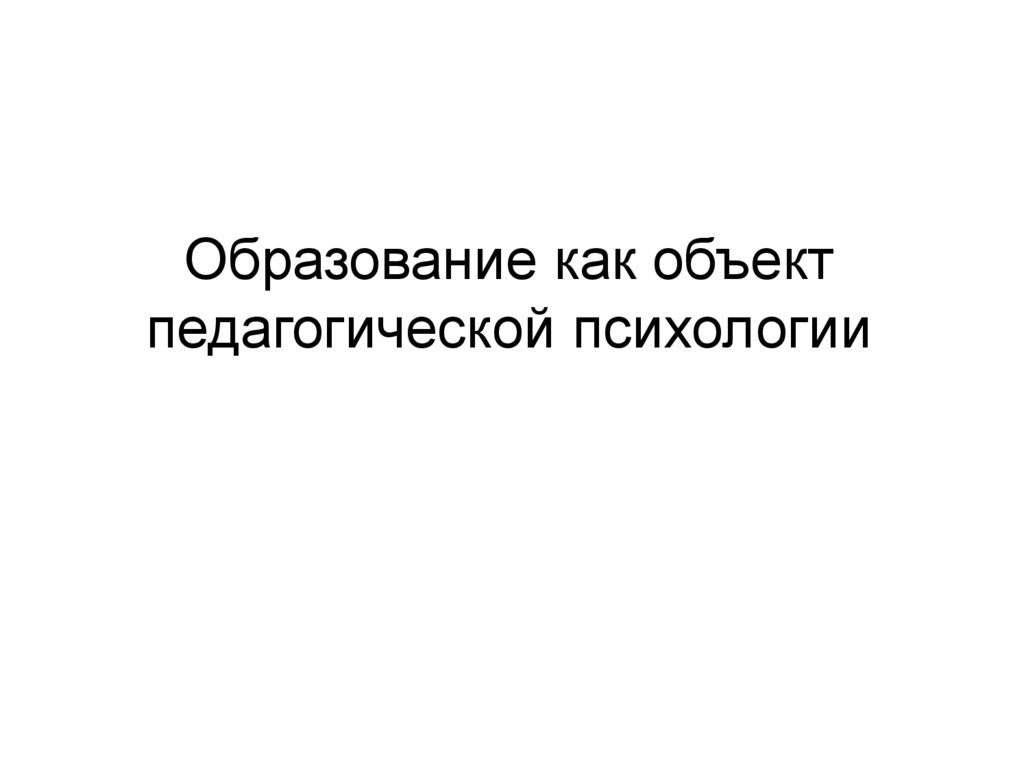 1. Образование как объект педагогической психологии