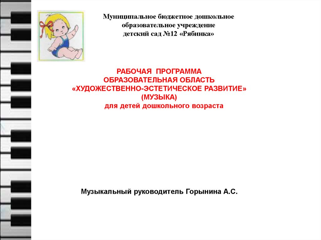 Рабочая программа образовательная область «художественно-эстетическое развитие»