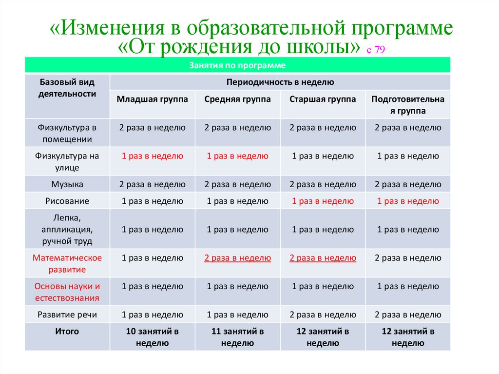 «Изменения в образовательной программе«От рождения до школы» с 79