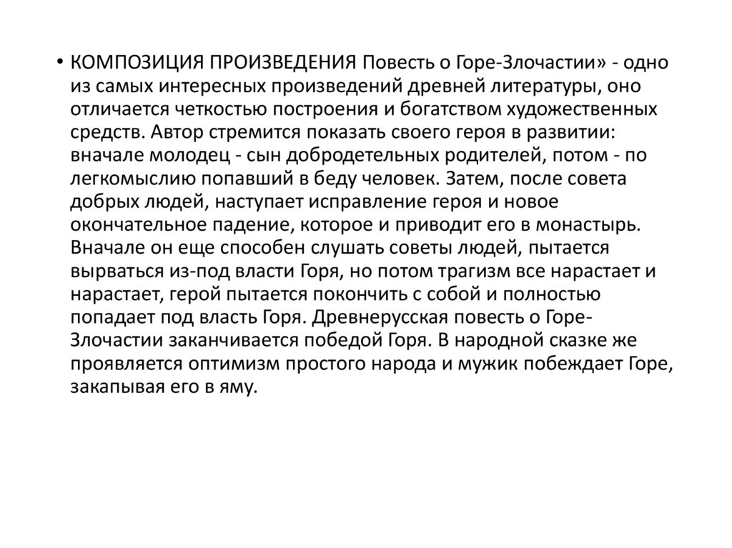 • КОМПОЗИЦИЯ ПРОИЗВЕДЕНИЯ Повесть о Горе-Злочастии» - одноиз самых интересных произведений древней литературы, оно