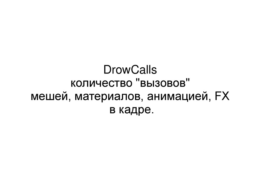 10. DrowCalls. Количество - мешей, материалов, анимаций, FX