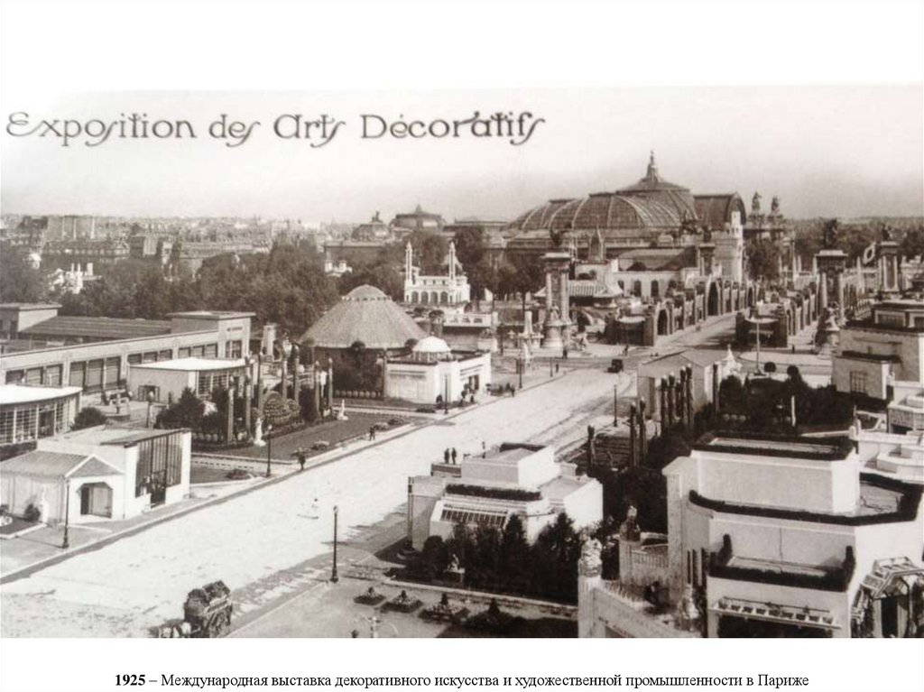 1925 – Международная выставка декоративного искусства и художественной промышленности в Париже19.