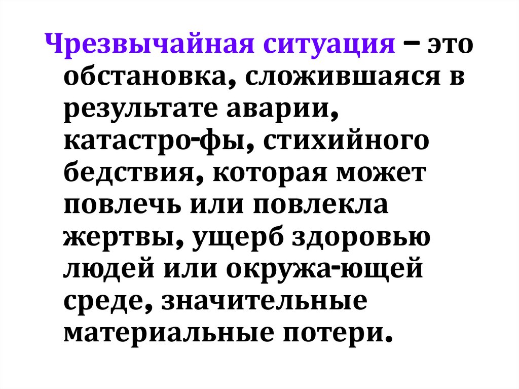 Чрезвычайная ситуация – этообстановка, сложившаяся в