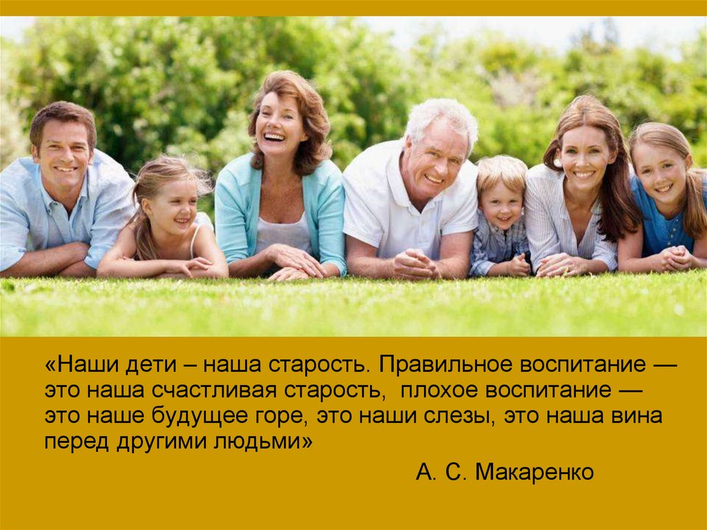 «Наши дети – наша старость. Правильное воспитание —это наша счастливая старость, плохое воспитание —