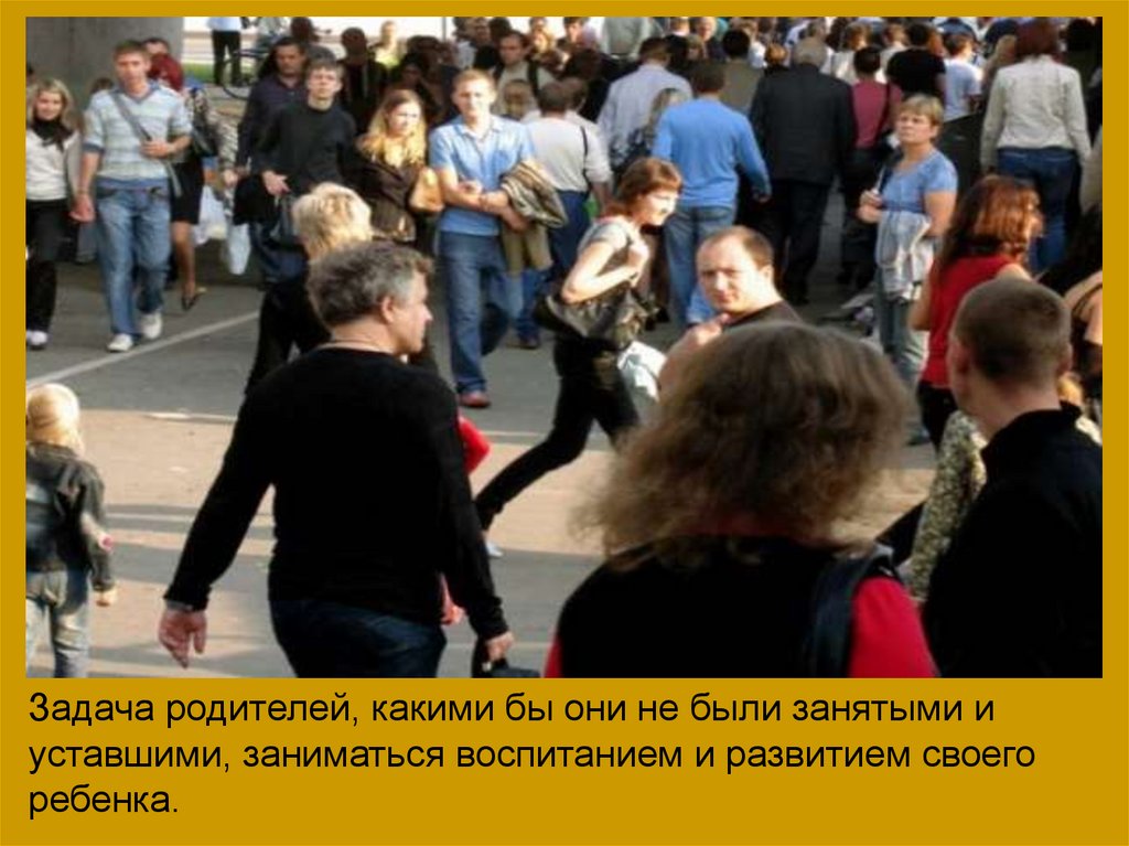 Задача родителей, какими бы они не были занятыми иуставшими, заниматься воспитанием и развитием своего