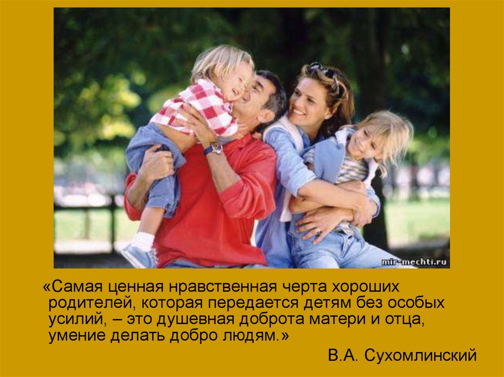 «Самая ценная нравственная черта хорошихродителей, которая передается детям без особых