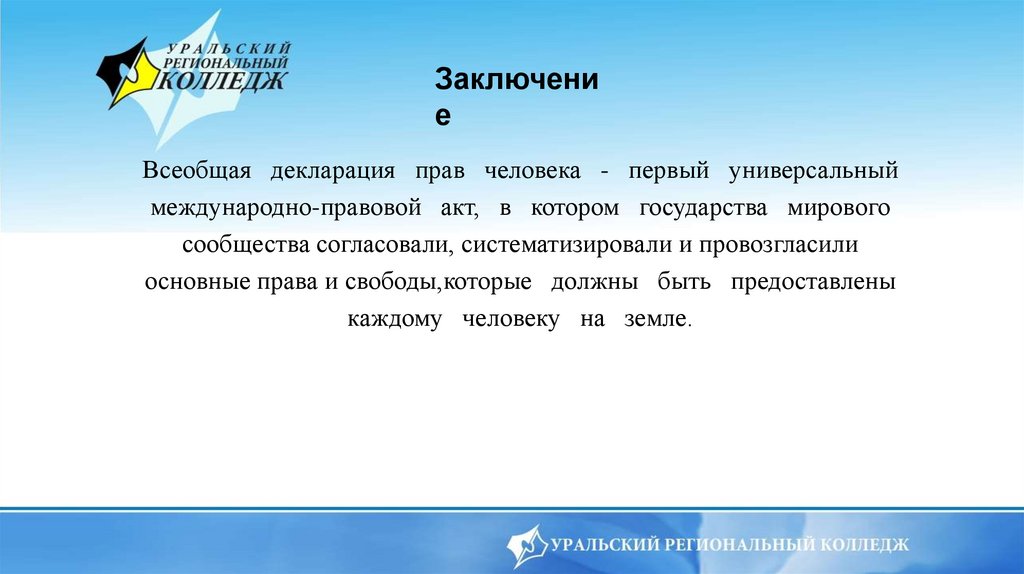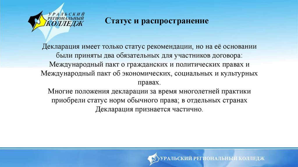 Всеобщее признаниеЗначимость Всеобщей декларации заключается не только в