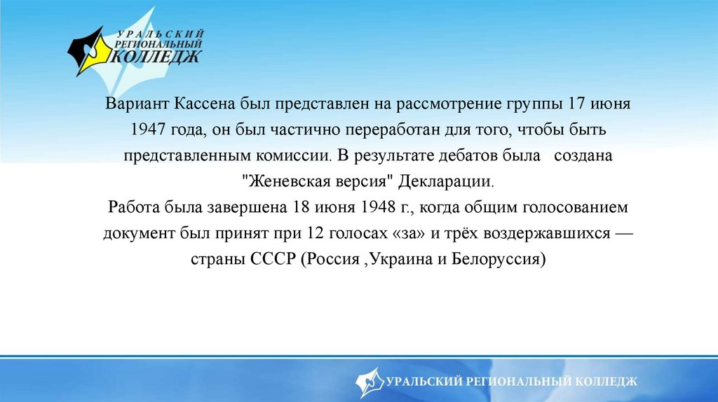 Работа была завершена 18 июня 1948 г., когда общим голосованием