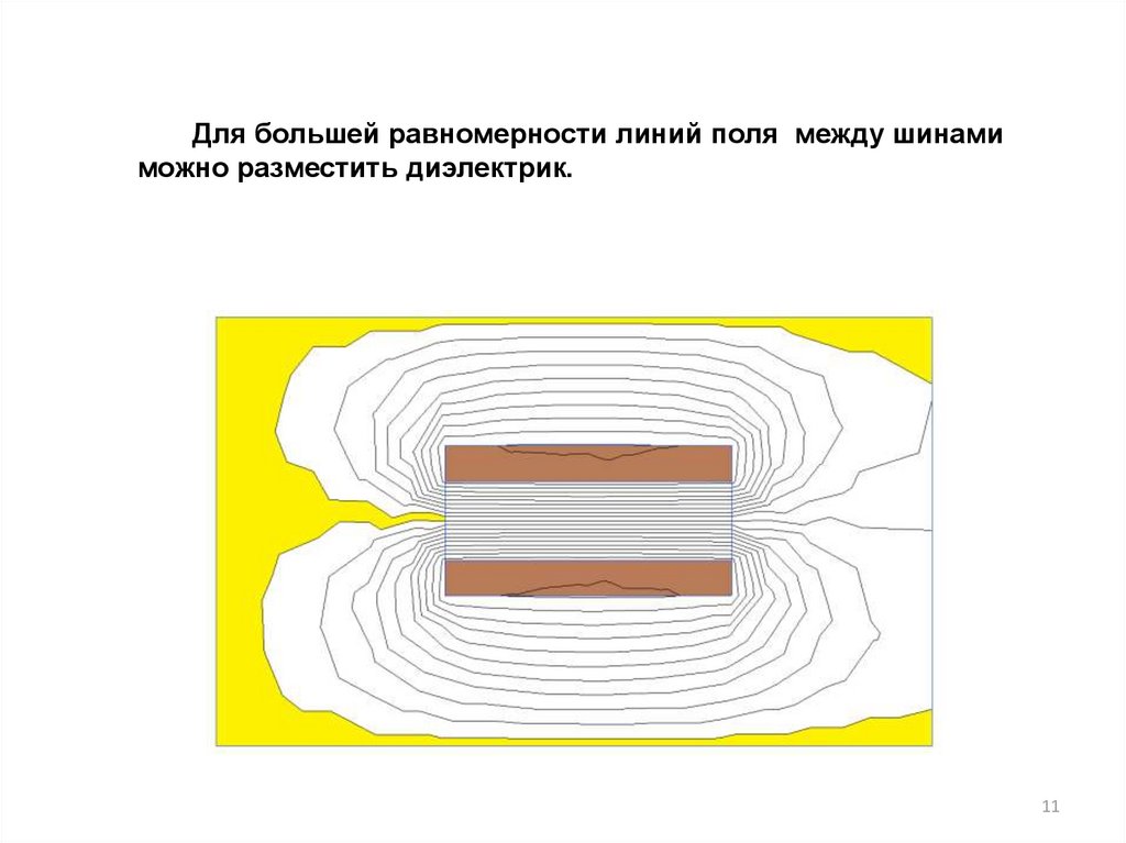 Для большей равномерности линий поля между шинамиможно разместить диэлектрик.
