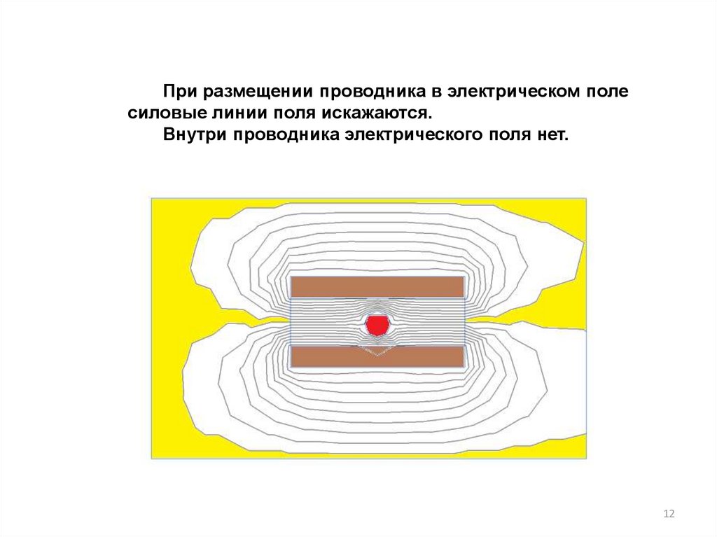 При размещении проводника в электрическом полесиловые линии поля искажаются.