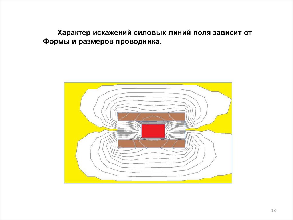 Характер искажений силовых линий поля зависит отФормы и размеров проводника.