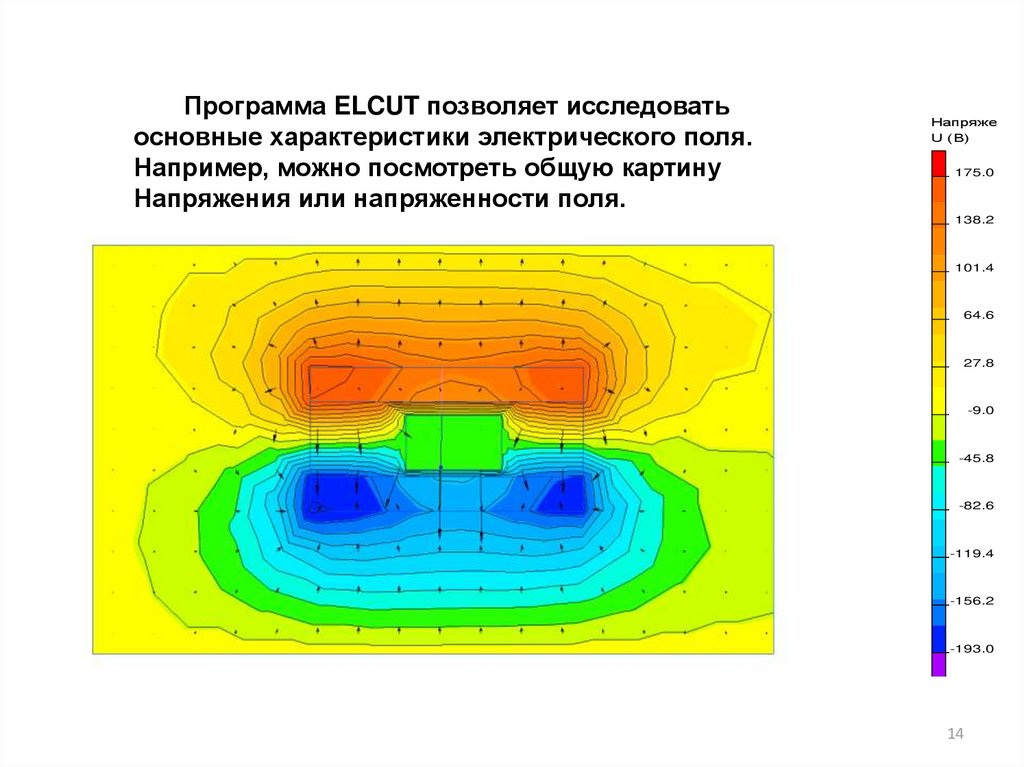 Программа ELCUT позволяет исследоватьосновные характеристики электрического поля.