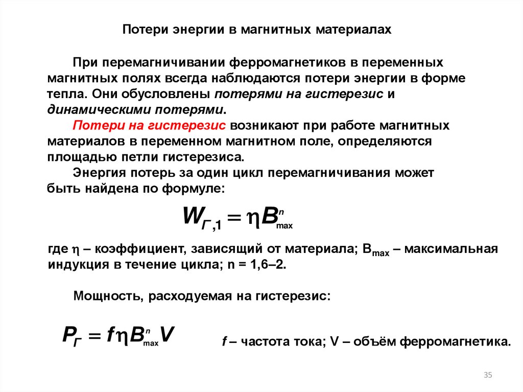 Потери энергии в магнитных материалахПри перемагничивании ферромагнетиков в переменных