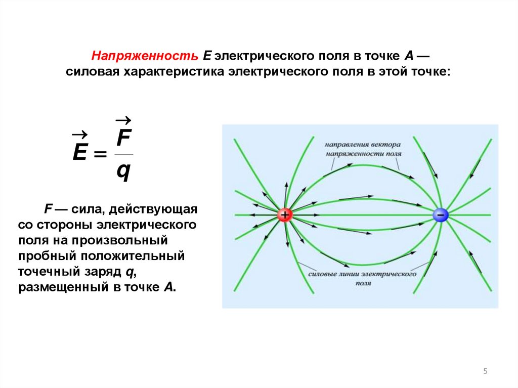 Напряженность E электрического поля в точке A —силовая характеристика электрического поля в этой точке: