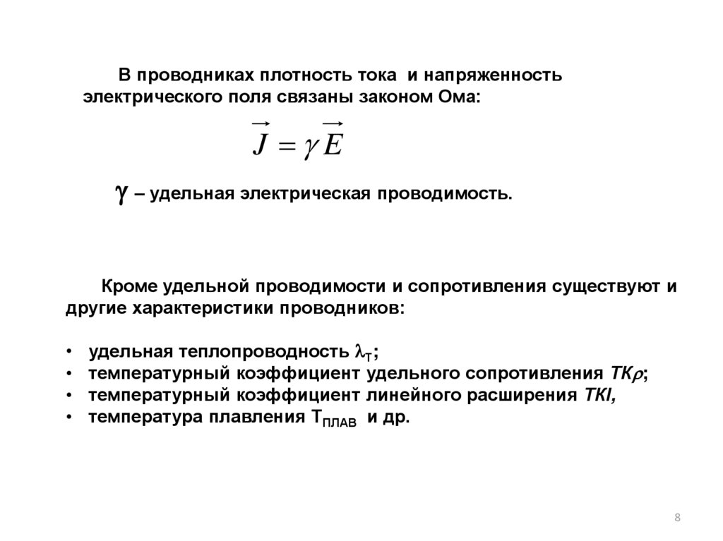 В проводниках плотность тока и напряженностьэлектрического поля связаны законом Ома: