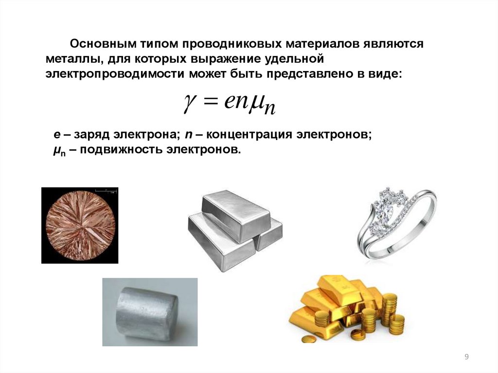 Основным типом проводниковых материалов являютсяметаллы, для которых выражение удельной