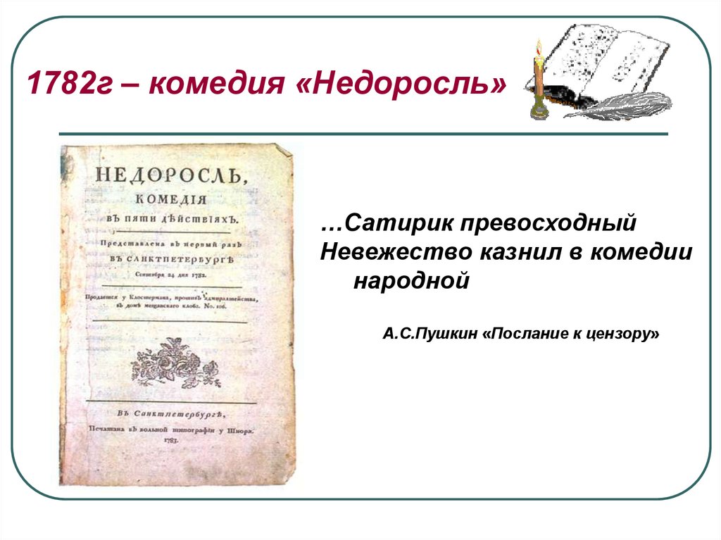 1782г – комедия «Недоросль»…Сатирик превосходный