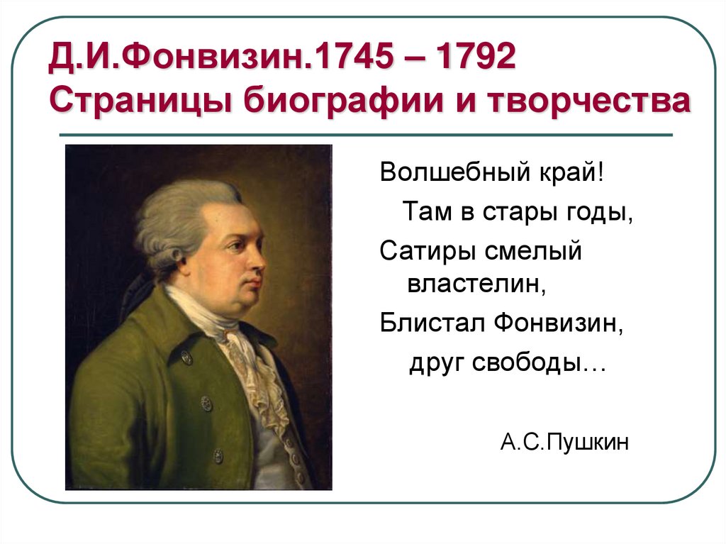 Д.И.Фонвизин.1745 – 1792Страницы биографии и творчества