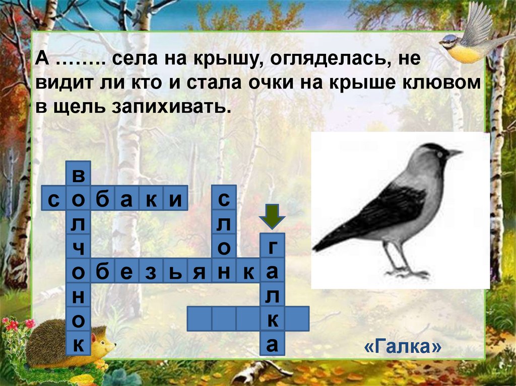 А …….. села на крышу, огляделась, невидит ли кто и стала очки на крыше клювом
