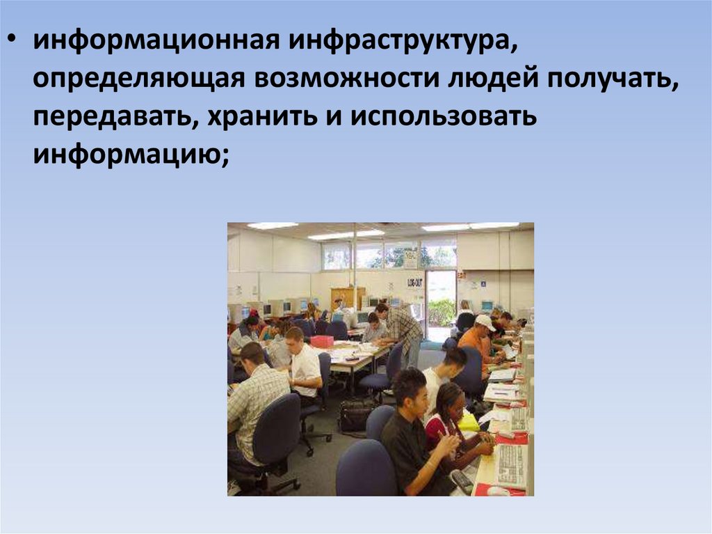 • информационная инфраструктура,определяющая возможности людей получать,