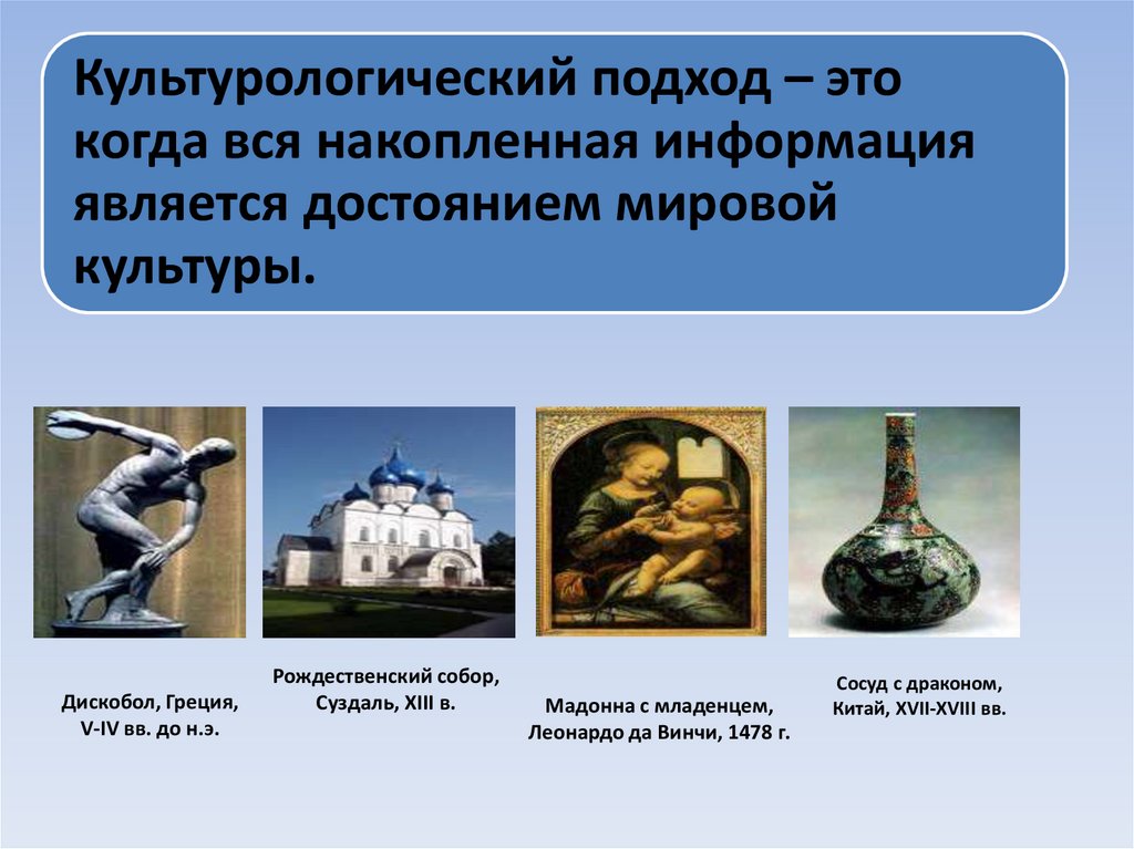 Культурологический подход – этокогда вся накопленная информация