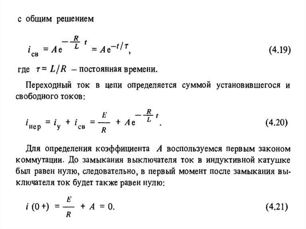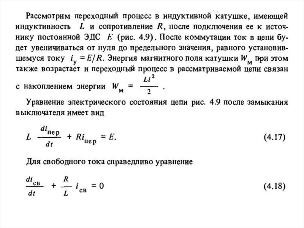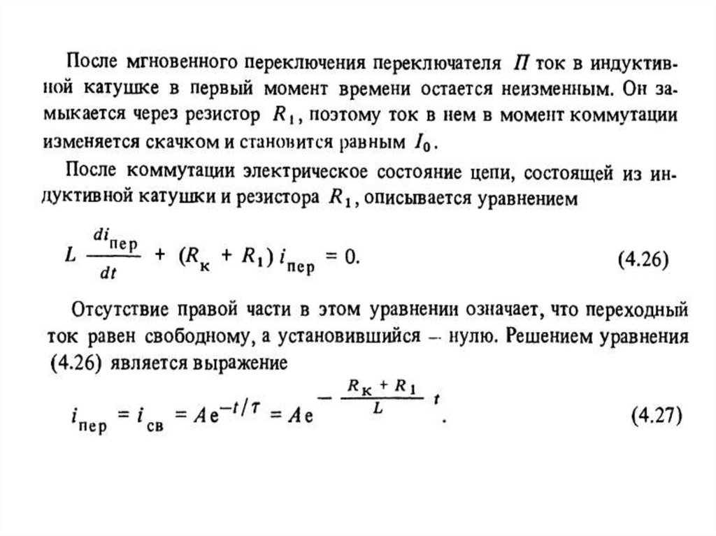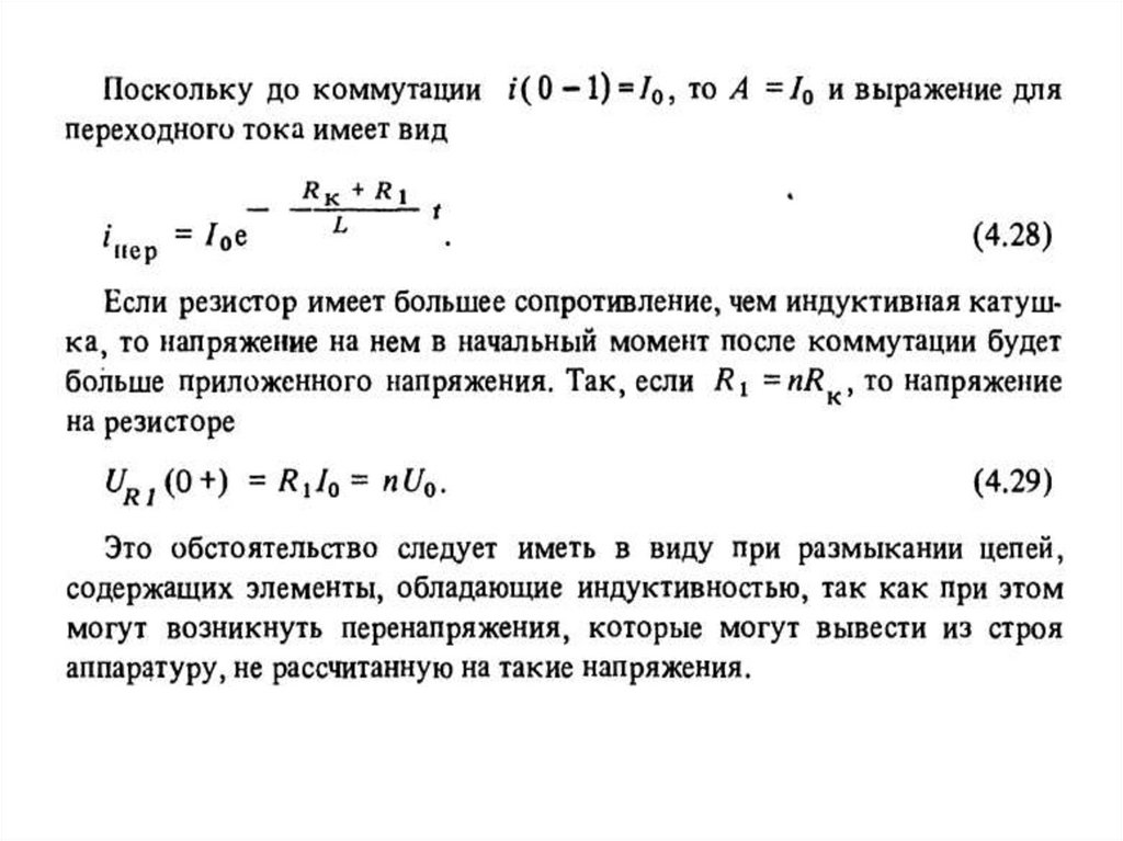 Отключение катушки индуктивности от источника постоянного напряжения и замыкание ее на резистор