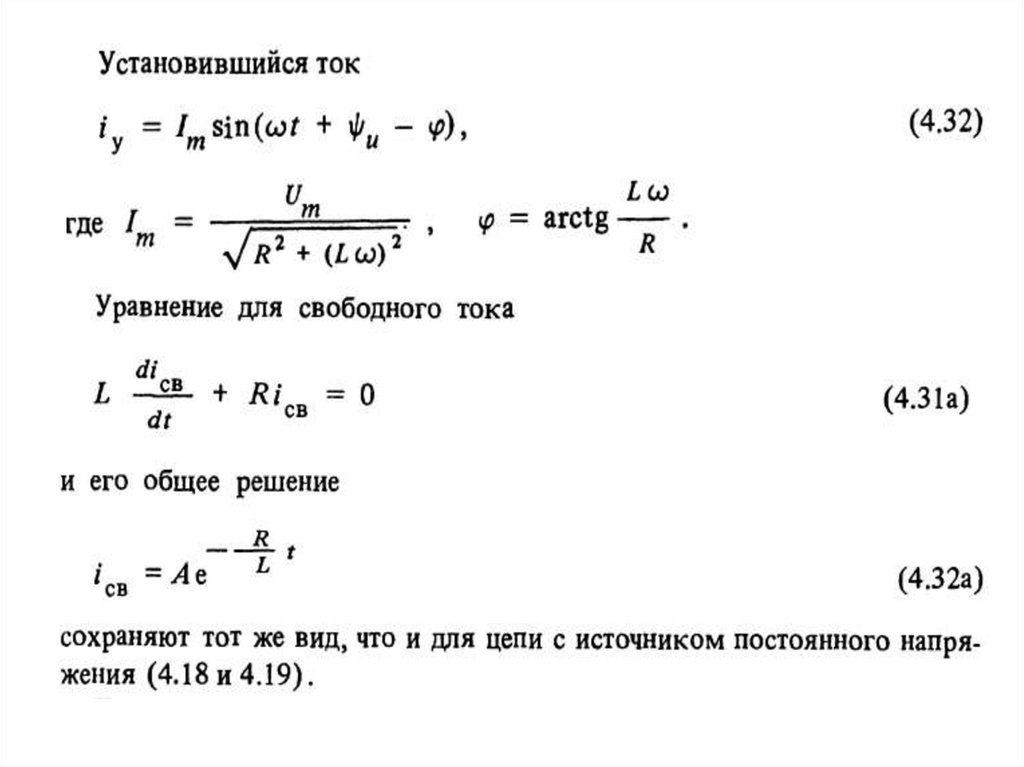 Подключение индуктиной катушки к источнику синусоидального напряжения