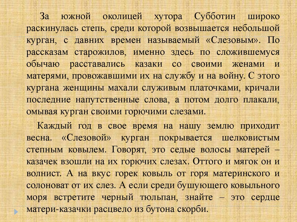 казачек взошли на их горючих слезах. Оттого и мягок он и