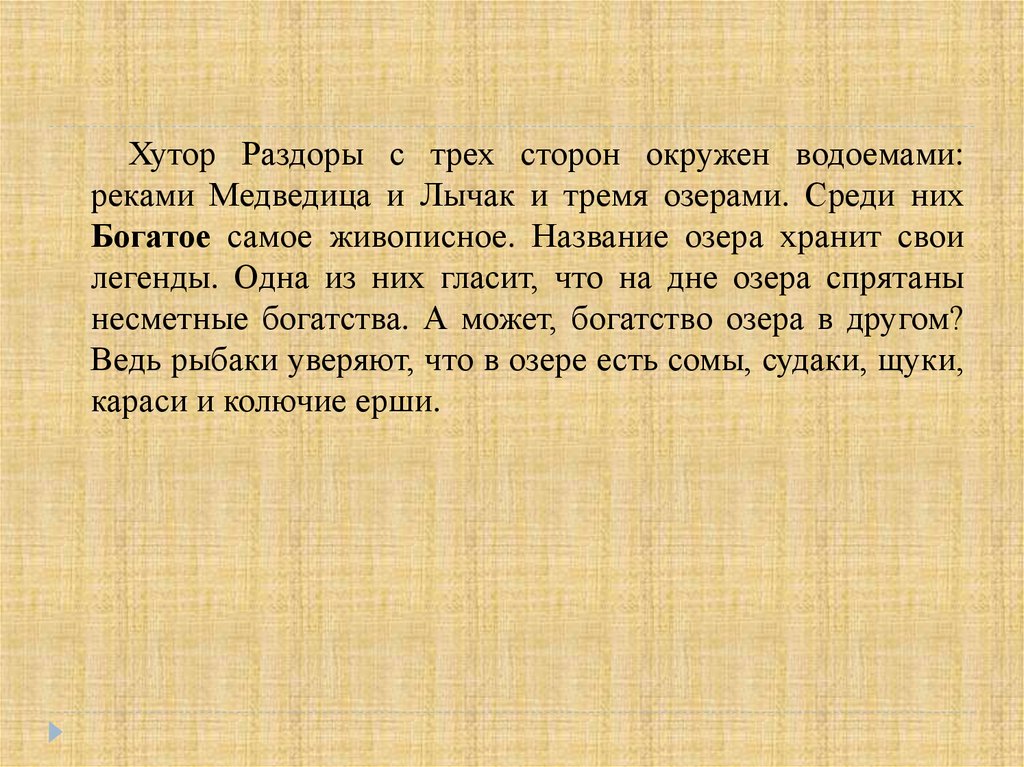 родников его вода холодная. Старожилы вспоминают, что в