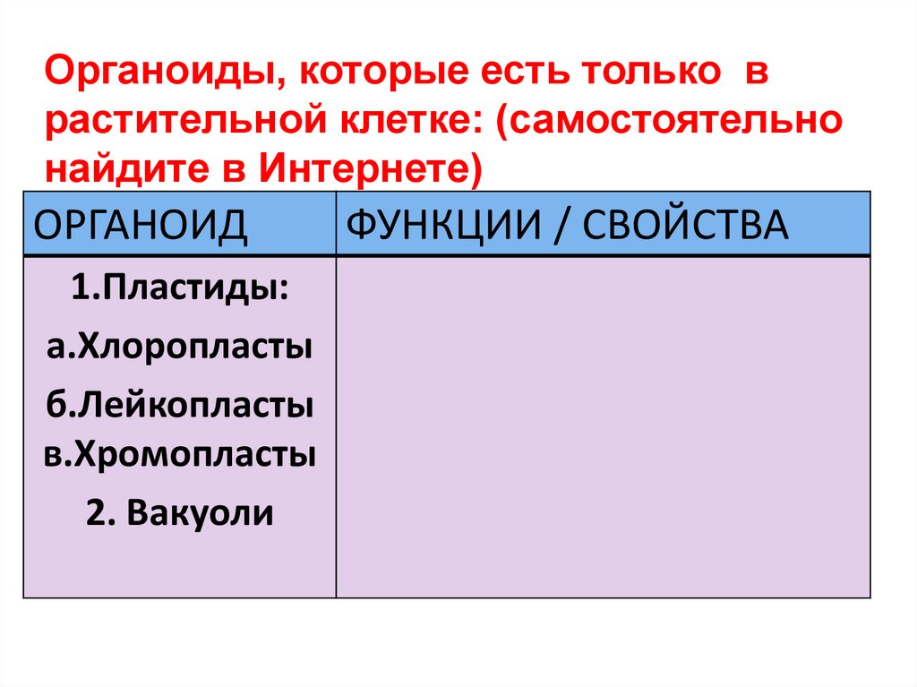 Органоиды, которые есть только врастительной клетке: (самостоятельно