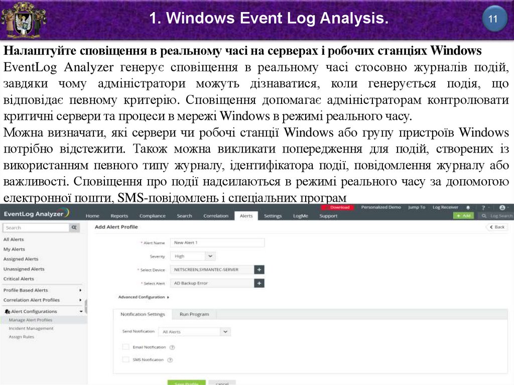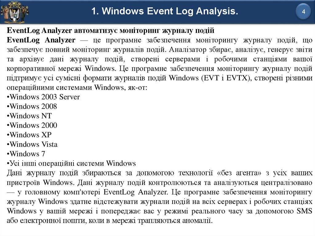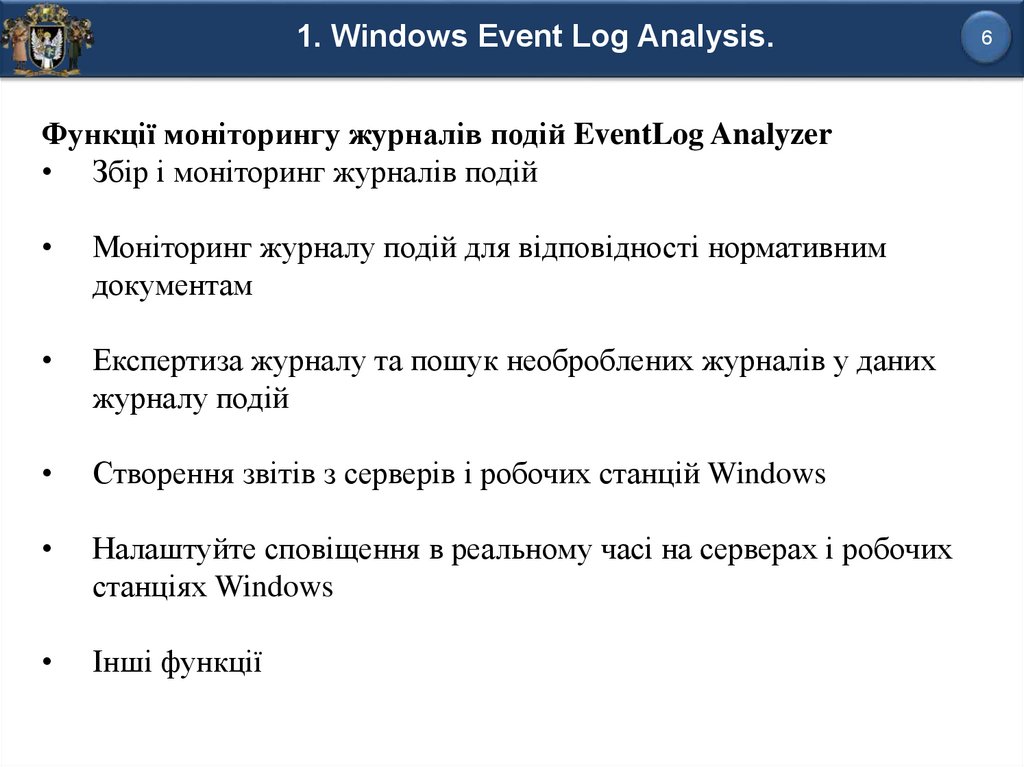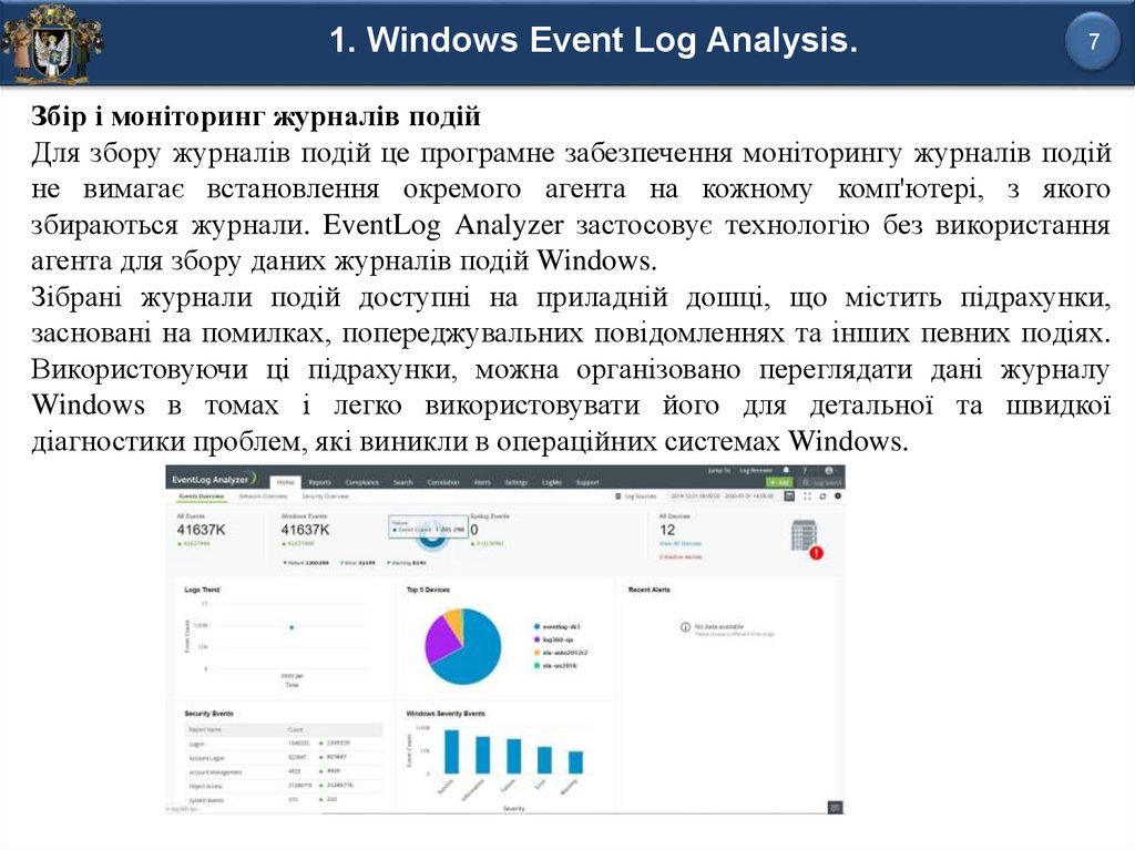 1. Windows Event Log Analysis.Функції моніторингу журналів подій EventLog Analyzer