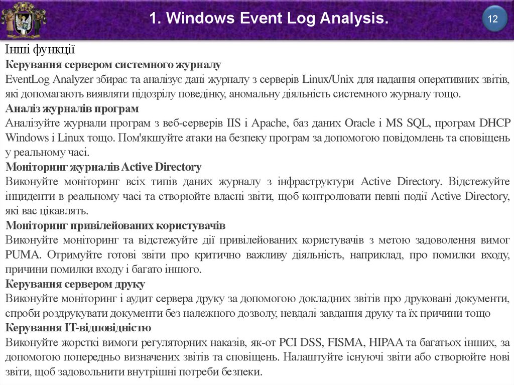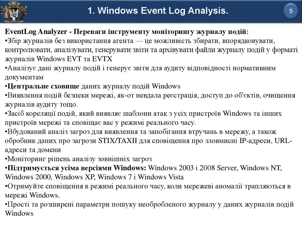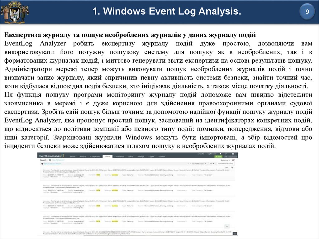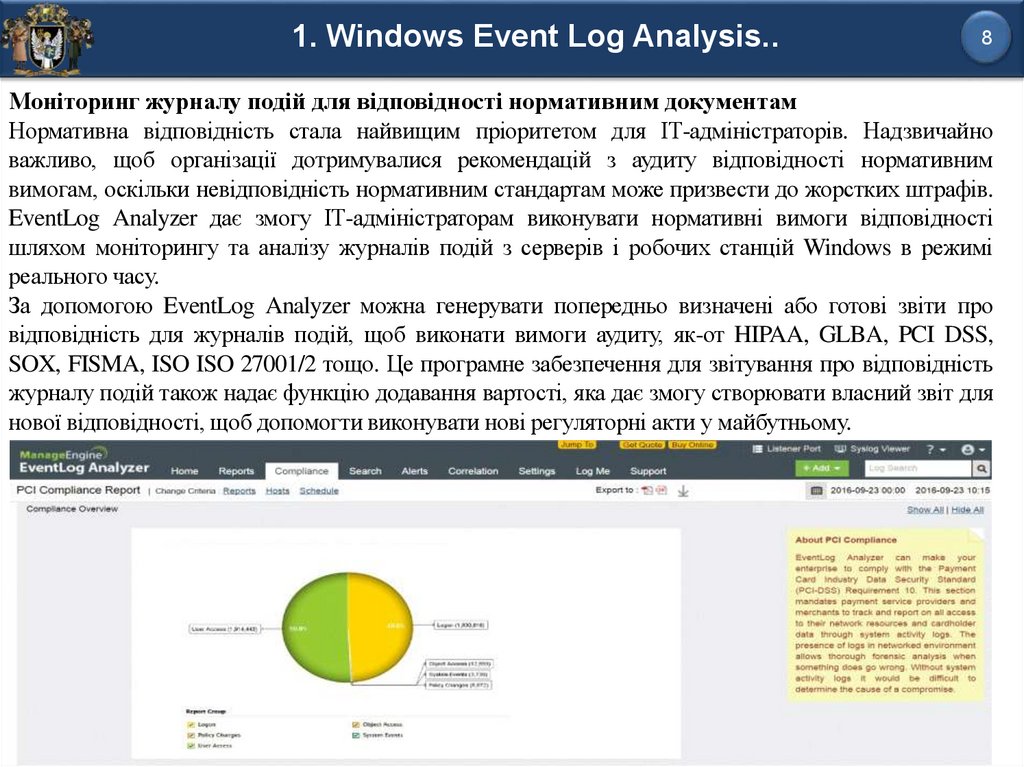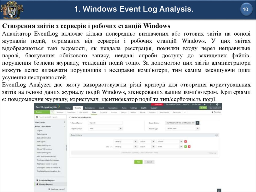 1. Windows Event Log Analysis.Функції моніторингу журналів подій EventLog Analyzer