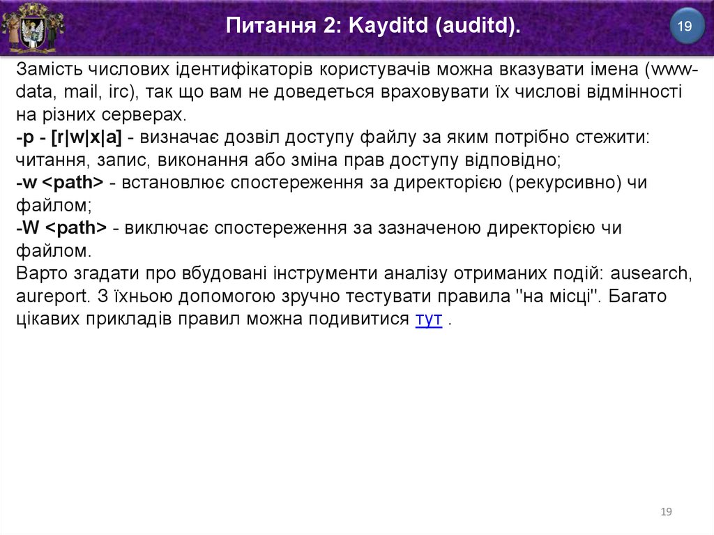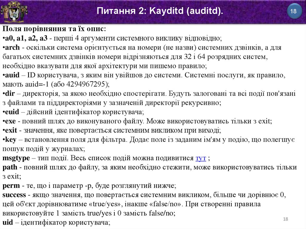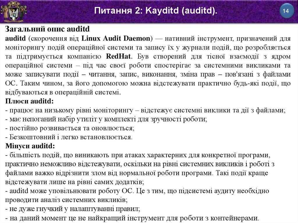 Варто згадати про вбудовані інструменти аналізу отриманих подій: ausearch,