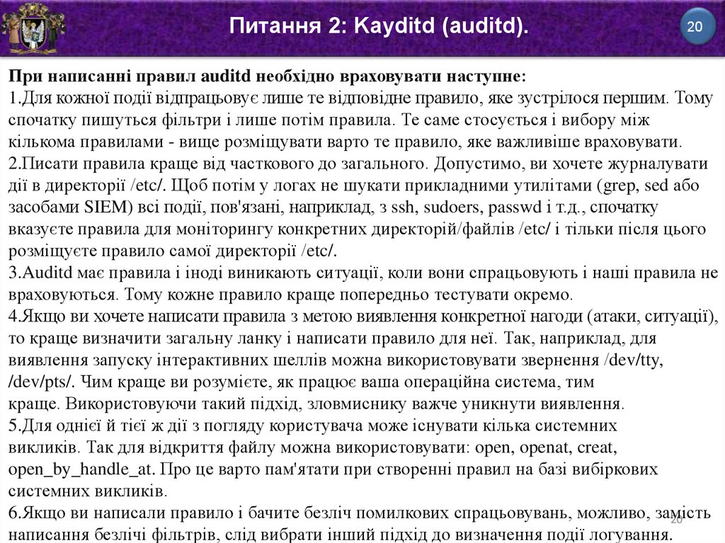 3.Auditd має правила і іноді виникають ситуації, коли вони спрацьовують і наші правила не
