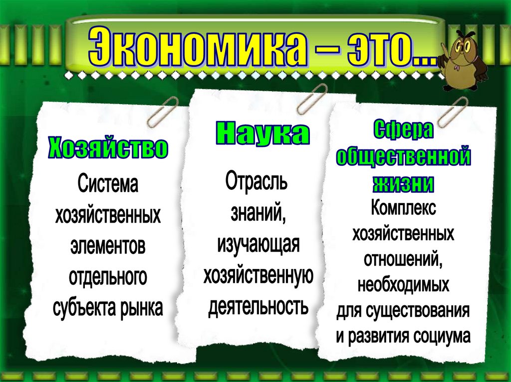 1. Систематизировать знания обэкономике как подсистеме общества, о ее