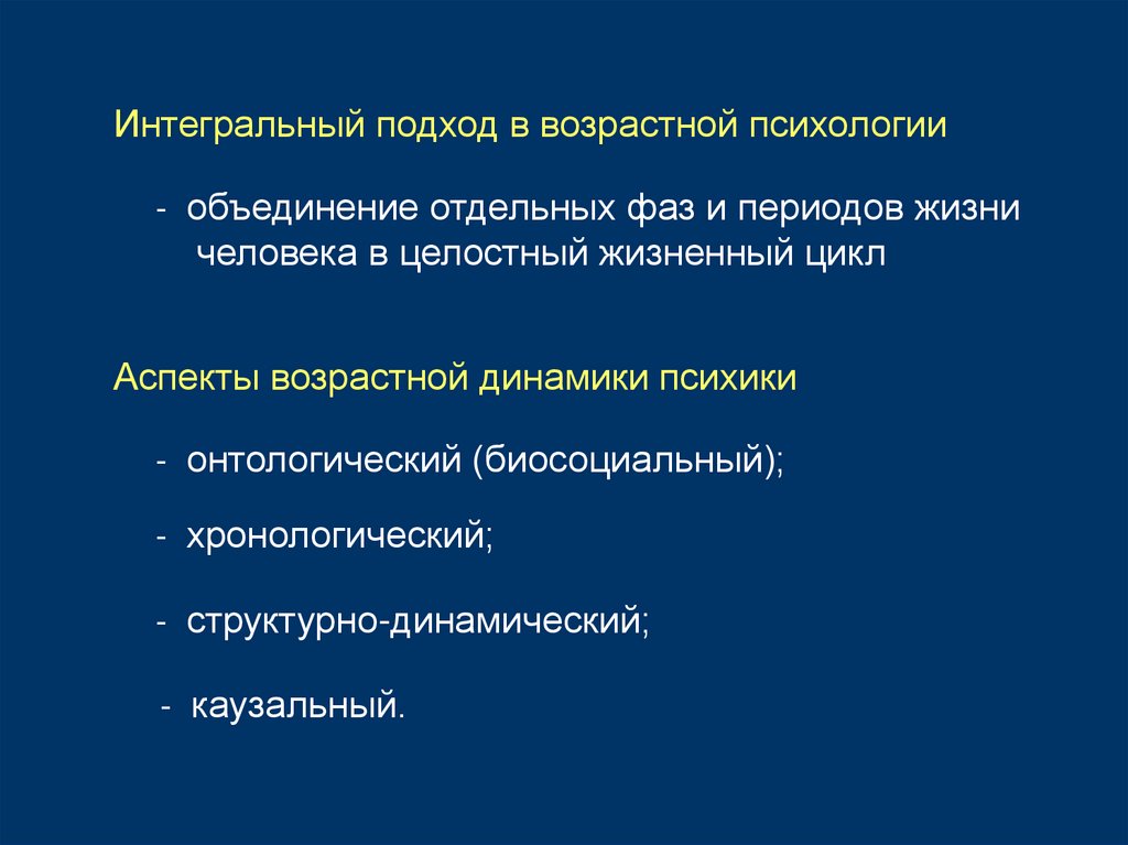 Интегральный подход в возрастной психологии- объединение отдельных фаз и периодов жизни