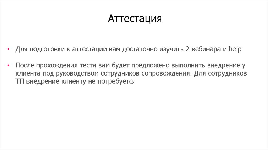 Аттестация• Для подготовки к аттестации вам достаточно изучить 2 вебинара и help