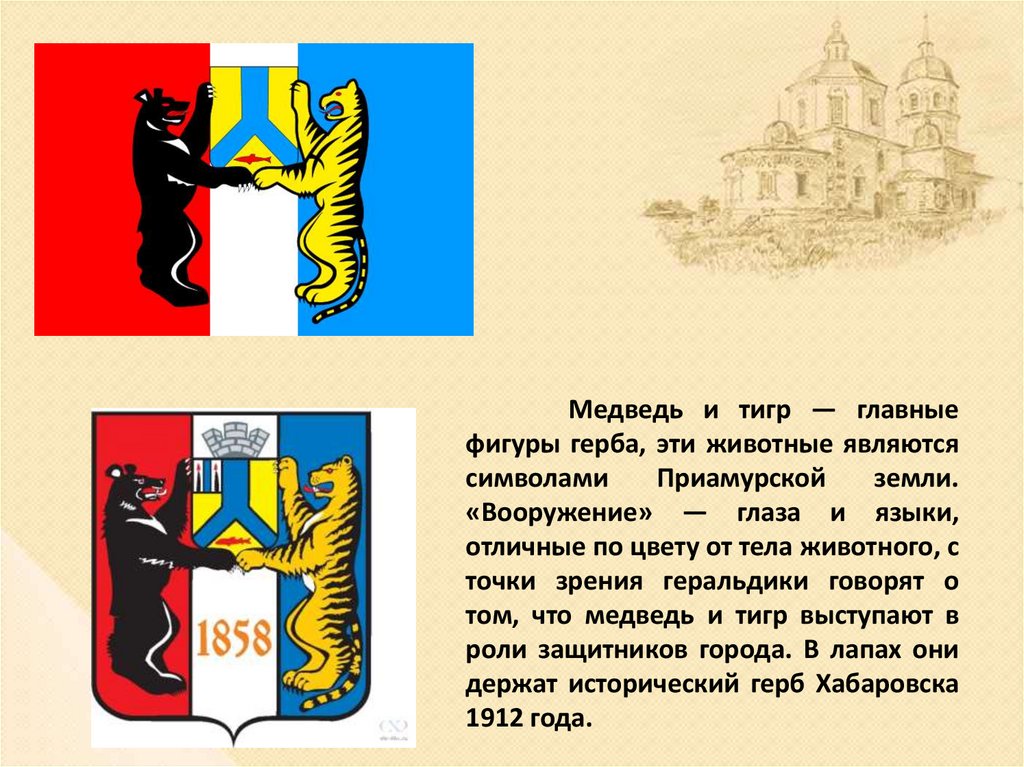 Медведь и тигр — главныефигуры герба, эти животные являются