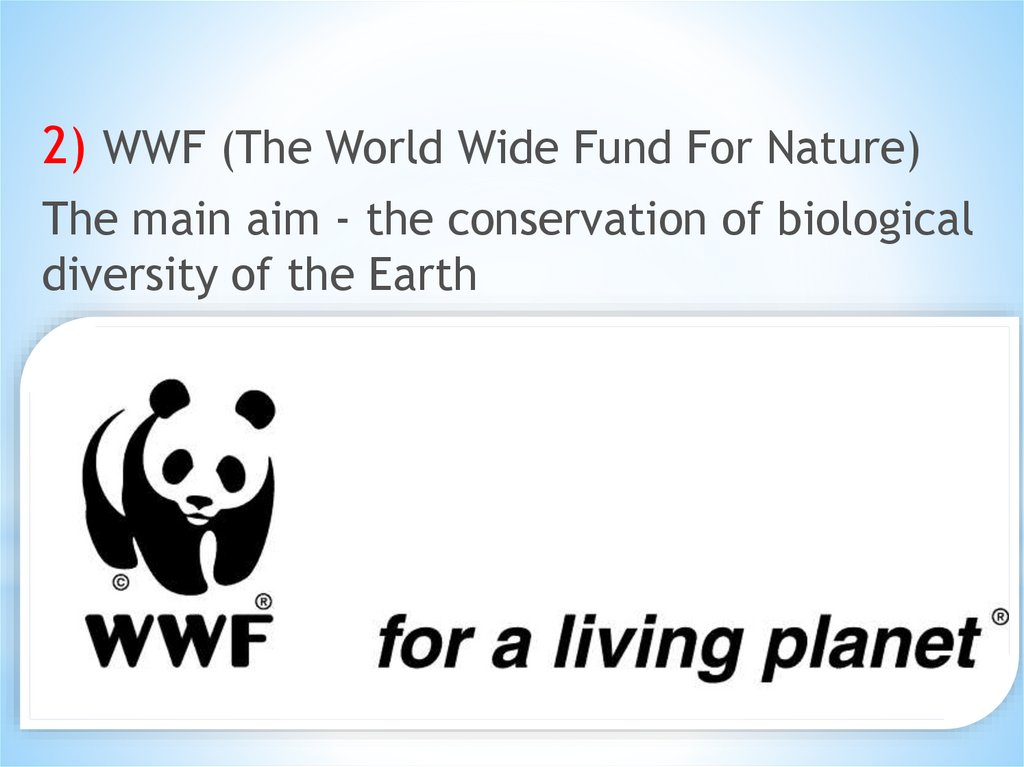 2) WWF (The World Wide Fund For Nature)The main aim - the conservation of biological