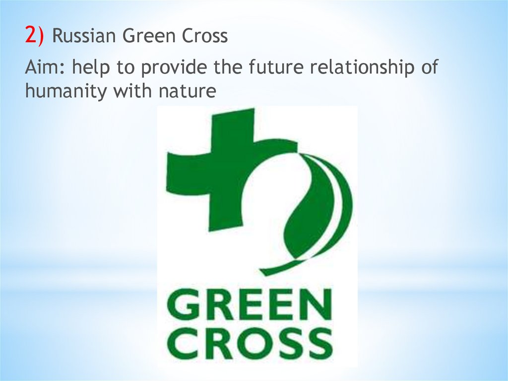 2) Russian Green CrossAim: help to provide the future relationship of