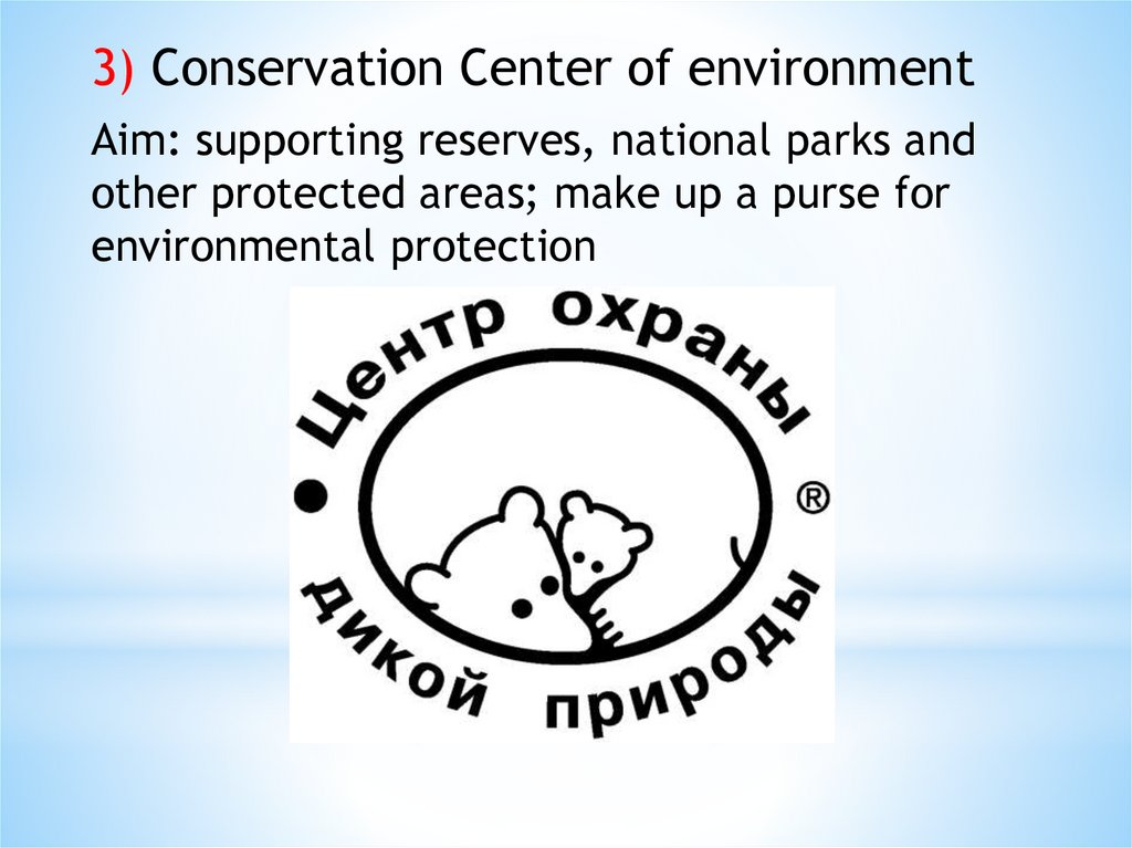 3) Conservation Center of environmentAim: supporting reserves, national parks and