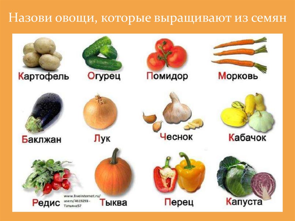 Назови овощи, которые выращивают из семян