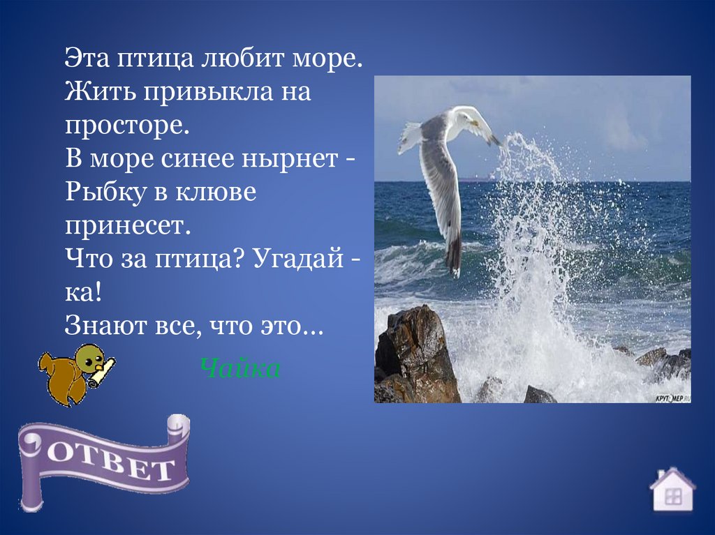 Эта птица любит море.Жить привыкла на