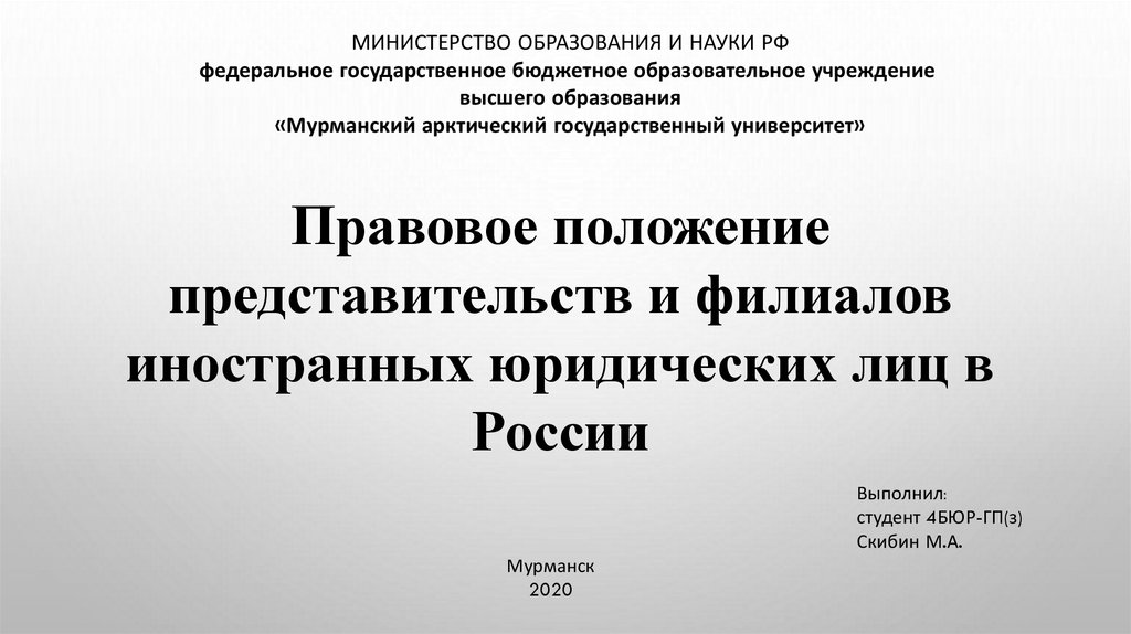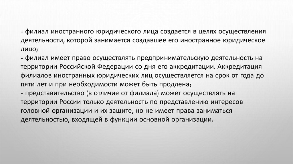 Правовое положение представительств и филиалов иностранных юридических лиц в России