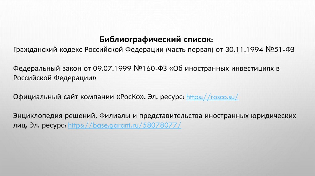 Библиографический список:Гражданский кодекс Российской Федерации (часть первая) от 30.11.1994 №51-ФЗ