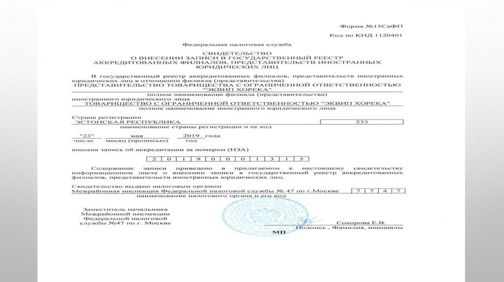 филиалов иностранных юридических лиц осуществляется на срок от года до
