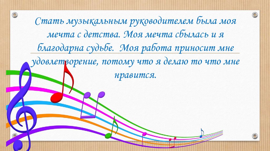 11. Стать музыкальным руководителем была моя мечта с детства. Моя мечта сбылась и я благодарна судьбе. Моя работа приносит мне