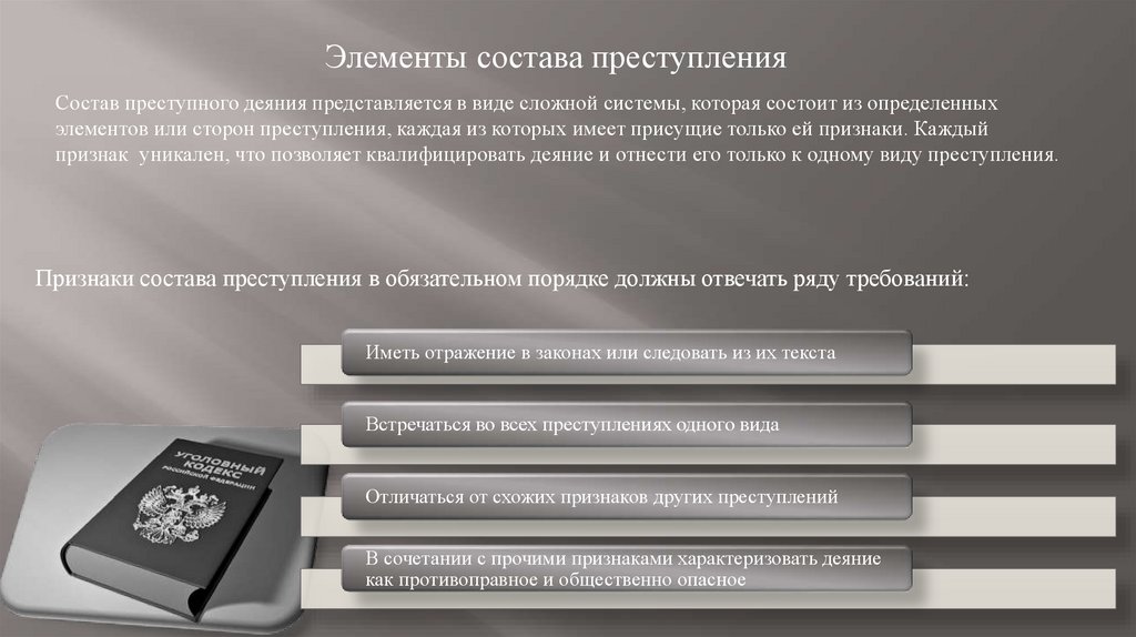 Признаки состава преступления в обязательном порядке должны отвечать ряду требований: